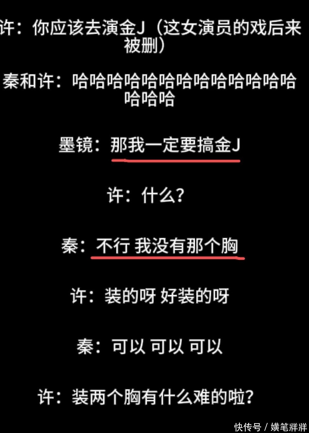 王家卫脱口而出:“我一定要搞金靖”,紧接着秦雯附和:“我没有那个胸”。结合语境,不难察觉其中“搞”字所承载的轻佻与冒犯。